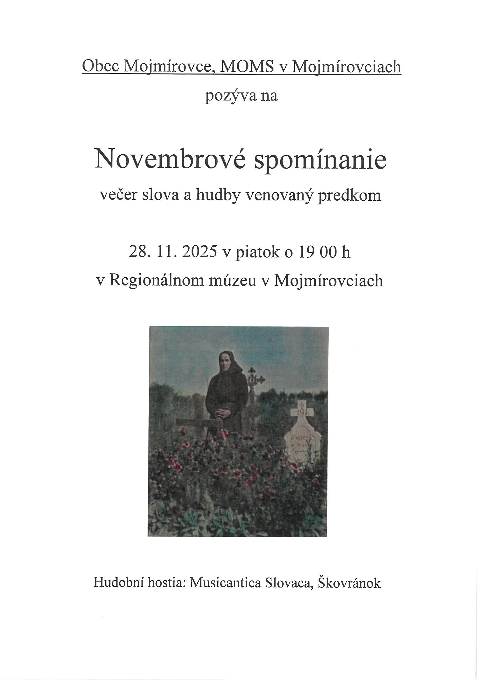 Obedová prestávka od 12:00 do 13:00 Prihlášky posielajte mailom: muzeummojmirovce@gmail.com